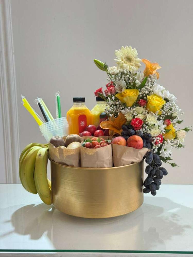يتم تغليف هذه الباقة بـ قاعده نحاسيه ، يضفي عليها لمسة من الفخامة، ، مما يعزز جمالها ويزيد من تميزها.